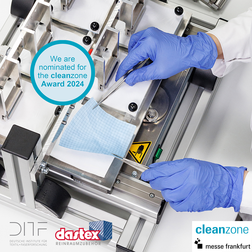Wir als Dastex wurden gemeinsam mit den DITF für den Cleanzone Award 2024 nominiert, der am 26. September 2024 in Frankfurt am Main verliehen wird. Beworben haben wir uns mit der ReBa²-Testmethode zur Bestimmung des Keimdurchtritts von Reinraumbekleidungstextilien, welche in Zusammenarbeit mit den Deutschen Instituten für Textil- und Faserforschung Denkendorf (DITF) entwickelt wurde. Diese Methode ermöglicht realitätsnahe Tests und bietet eine hohe Flexibilität im Vergleich zu herkömmlichen Verfahren.