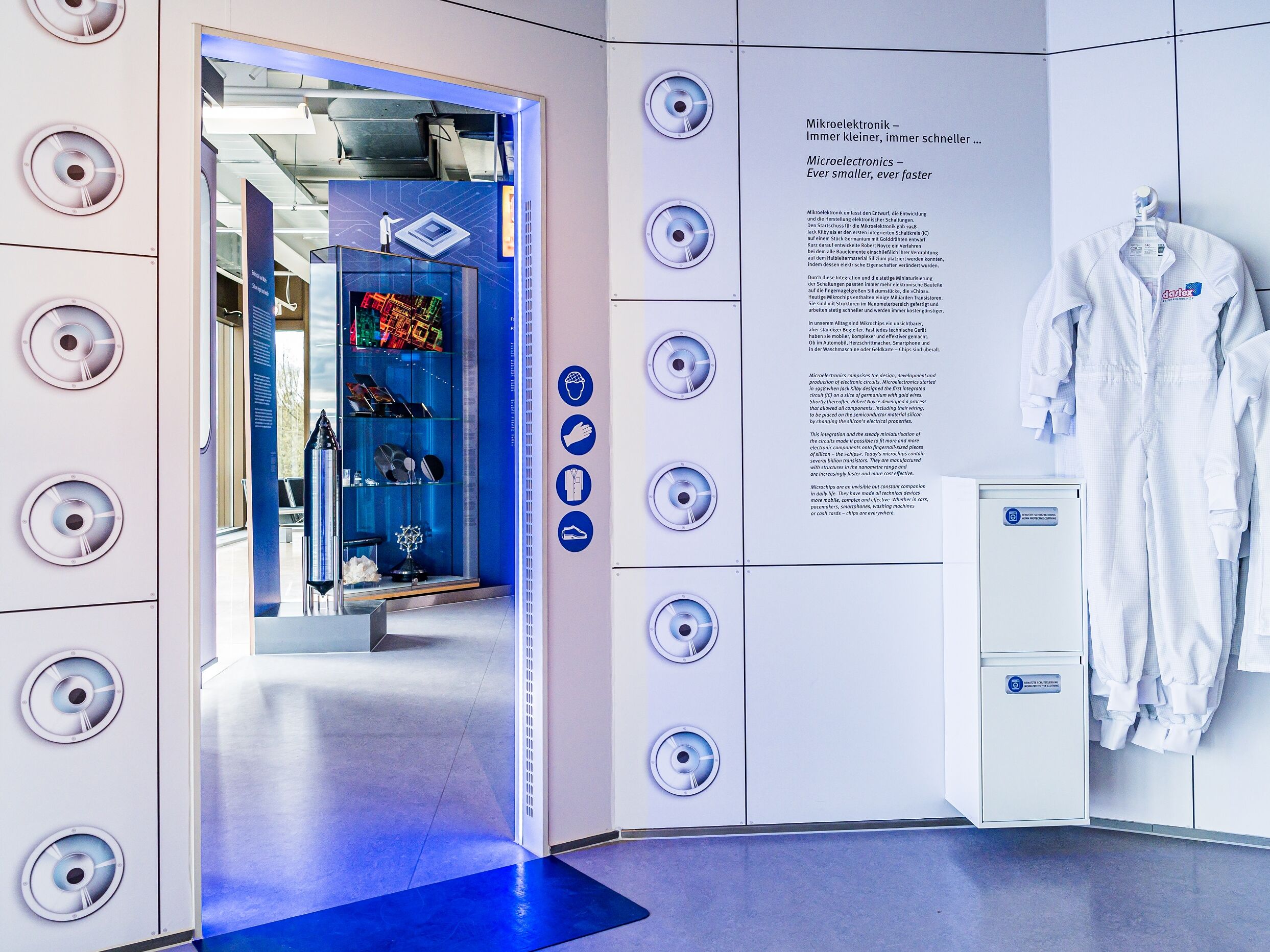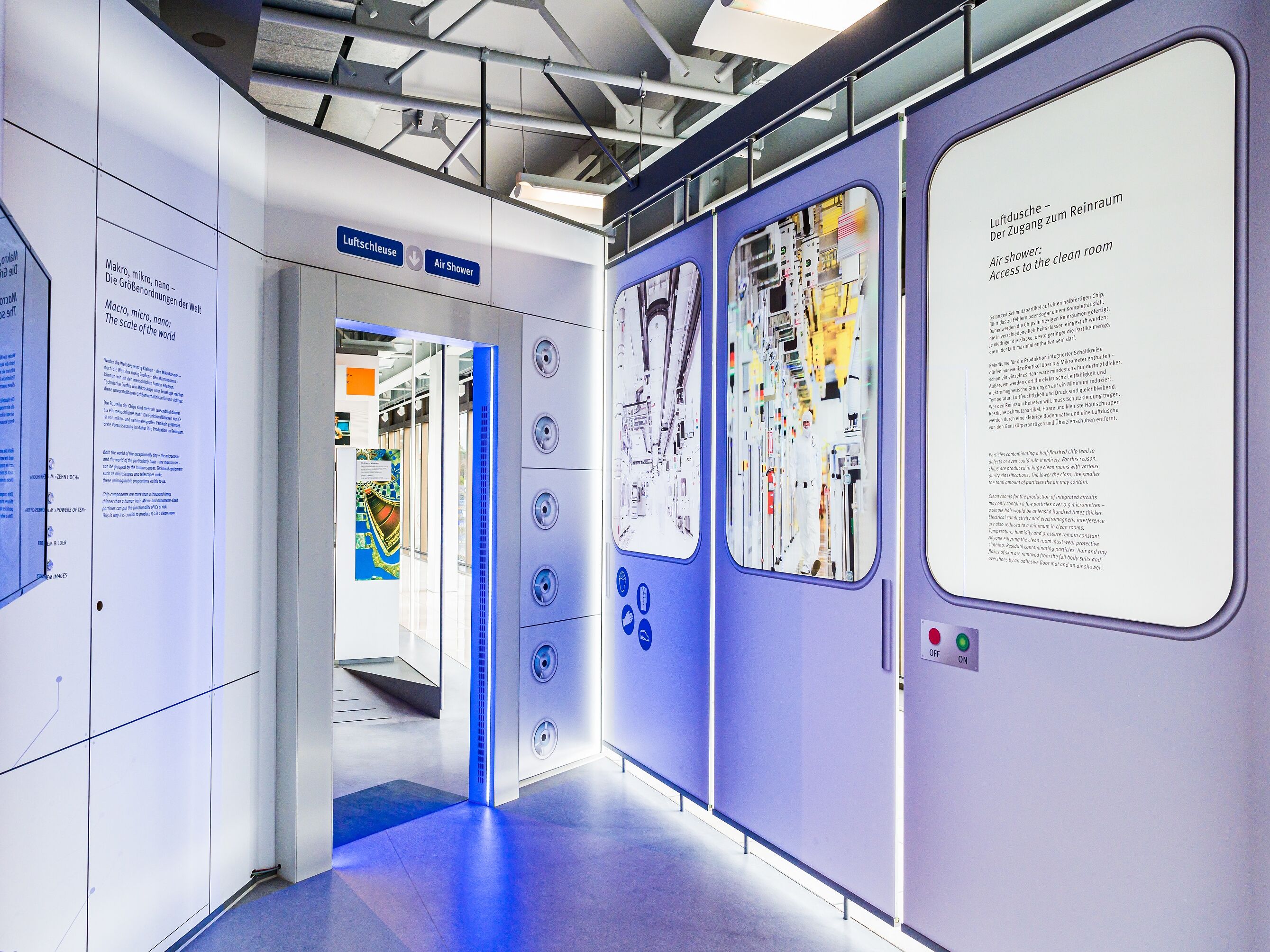Hier können die Besucher die „Reise vom Sand zum Mikrochip erleben.“ Den Eingang zur Ausstellungseinheit bildet die Inszenierung eines Reinraums samt Luftdusche. Um zu verhindern, dass Schmutzpartikel auf einem halbfertigen Chip Fehler verursachen, werden sie in riesigen Reinräumen gefertigt.