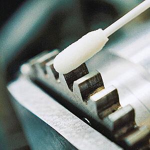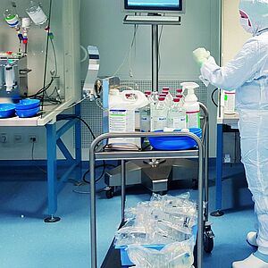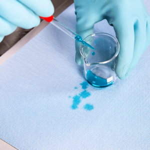 We have also realised an in-house development of a test bench for testing the particle release of cleanroom wipes and put it into operation for our own testing purposes as well as for third parties. The latest and unique test device is the result of a joint project with the DITF to determine the resistance to wet bacterial penetration in cleanroom garment fabrics (ReBa2 test method).