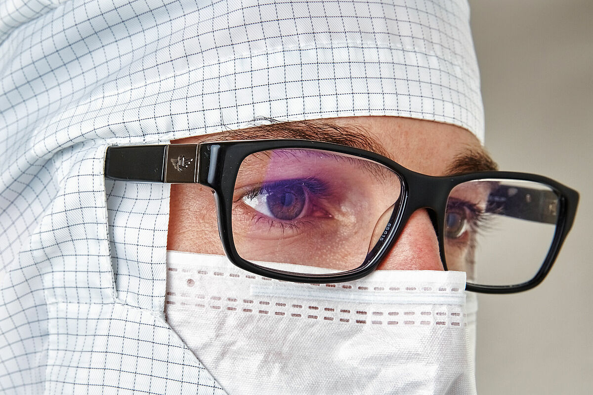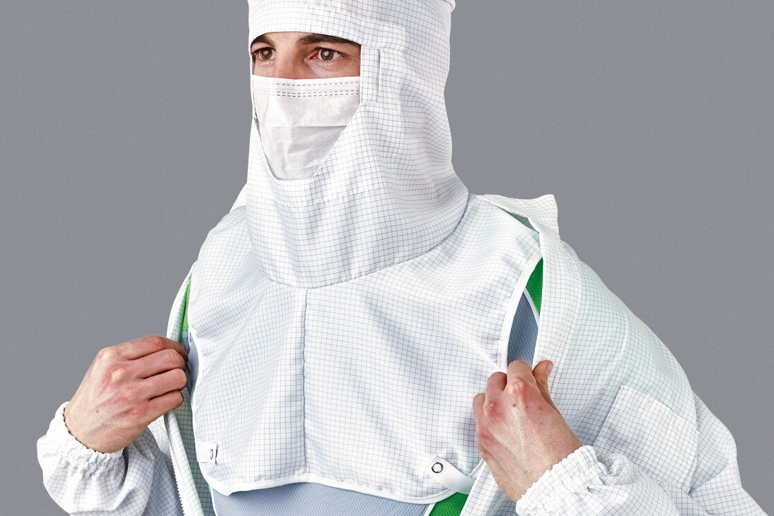 With the eye slit hood, only the eye area is open, which can be covered by the use of cleanroom goggles and - depending on the model - also if the user wears his own correction goggles.