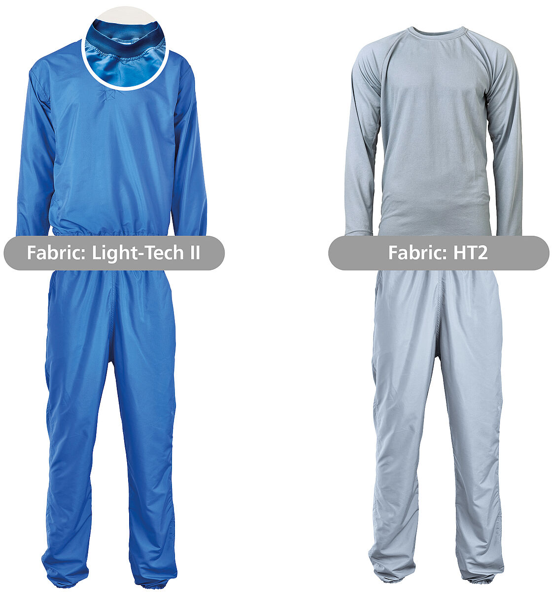 Compared to common casual clothes, cleanroom undergarments are manufactured from abrasion-resistant synthetic material.
