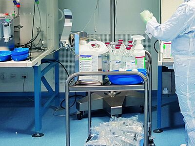 elimination of residues/dirt | measures that go beyond cleaning | put into a non-infectious state | make it germ-free |