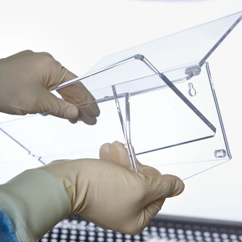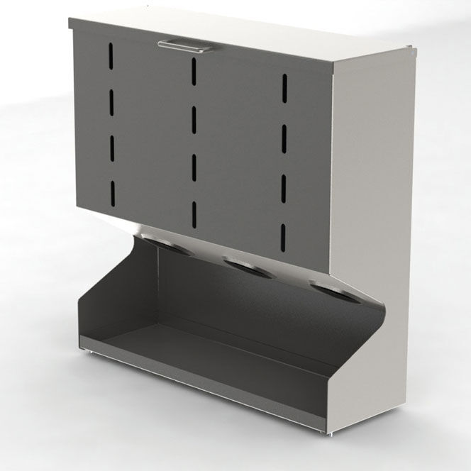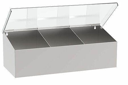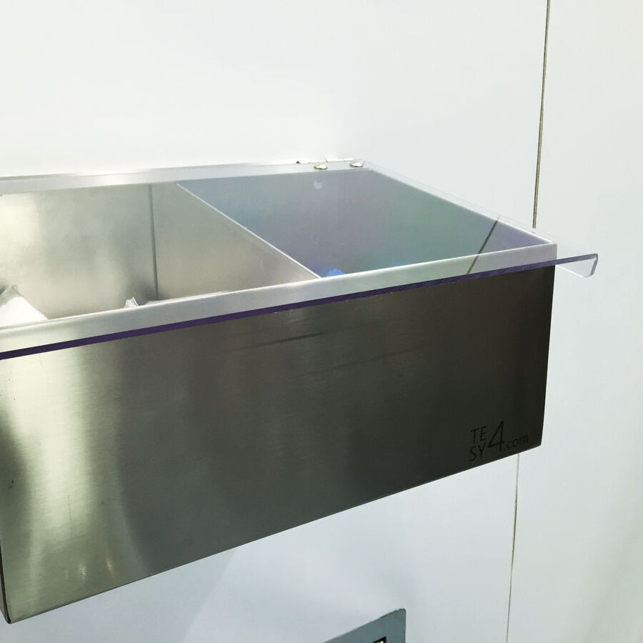 Due to the higher stability of stainless steel compared to acrylic, dispenser units made of stainless steel can be manufactured in larger dimensions.