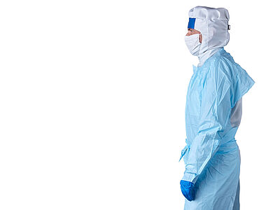 These serve even more specifically to protect the product or process, but also to protect the employee (PPE). Spunbonded non-wovens are used almost exclusively for the production of disposable garments, which are consolidated by heat, pressure or water jet.