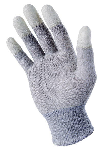Polyamide stretch avec fils continus en carbone, bouts des doigts enduits de PU, antistatique, N° art. 30120