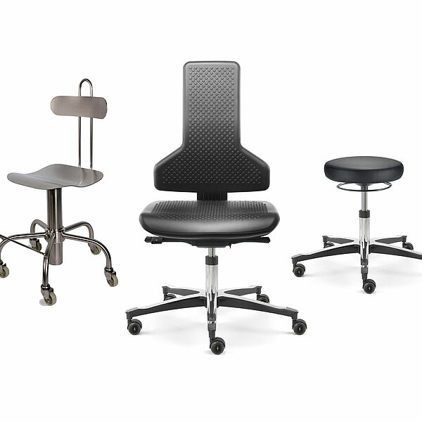 Tabourets destinés à être utilisés dans des pièces très sensibles et qui exigent une grande pureté de l'air ambiant.