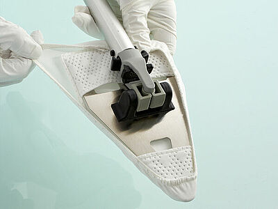 Grâce à l‘emploi de manches à rallonge, ces ustensiles peuvent être également utilisés pour des endroits difficilement accessibles. Leurs formes spéciales permettent un accès sans difficulté aux coins et angles. Les housses adéquates sont faites de préférence en polyester résistant à l‘abrasion. Dans des cas moins critiques, on utilisera des housses en polyester/cellulose.