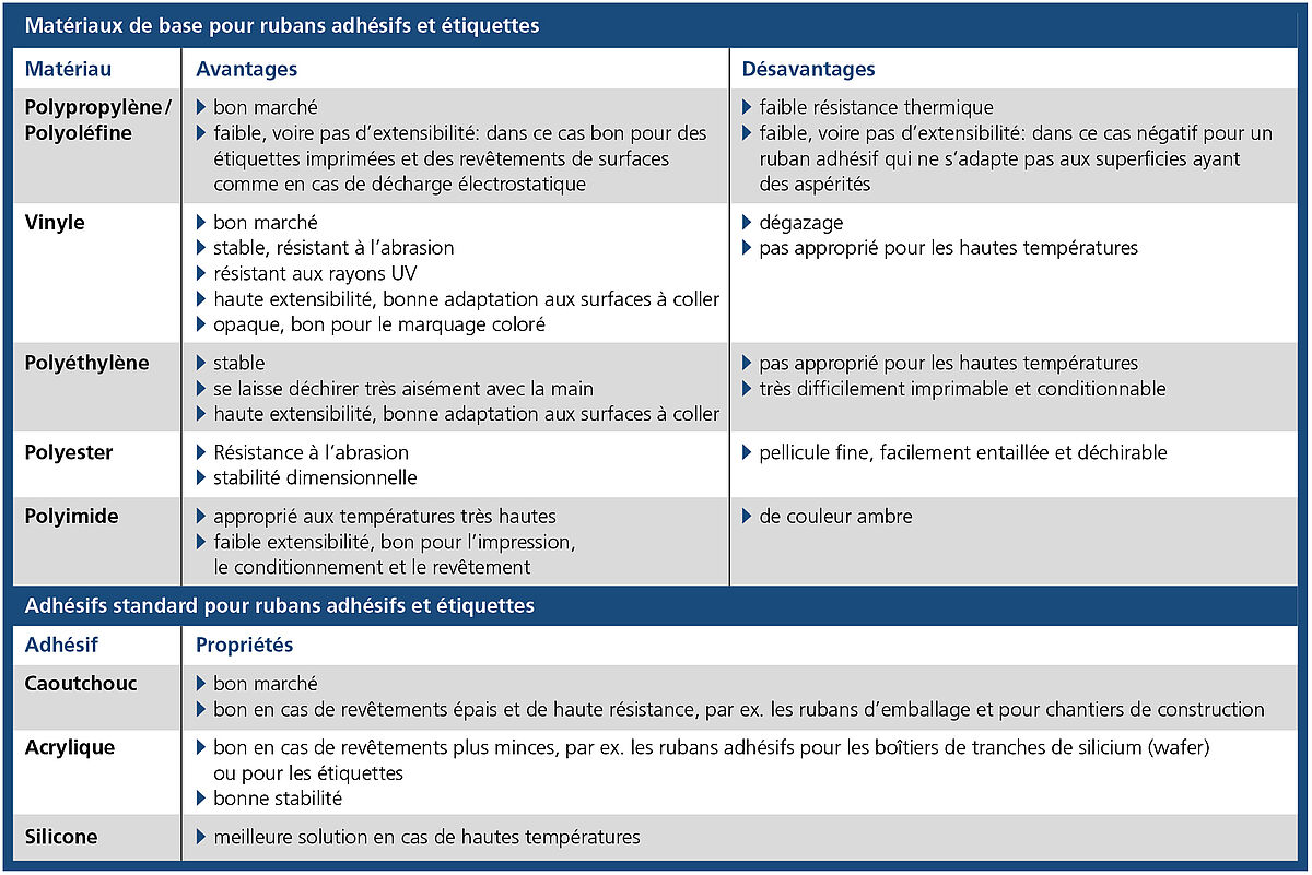 | Profil général exigé pour les rubans adhésifs | Exigences spécifiques selon l’application |