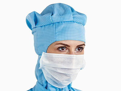 Les cagoules pour salle propre, assorties de masques bucco-nasaux, sont les compléments idéaux des combinaisons, blouses ou vestes lorsque les exigences de protection du produit et du processus l'exigent. Elles couvrent la zone critique autour de la tête avec des matériaux de haute performance, de sorte que l'émission de particules et de germes en suspension dans l'air est réduite de façon démultipliée.