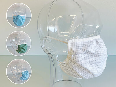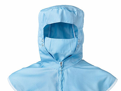 Les masques bucco-nasaux confectionnés avec des textiles compatibles avec les salles propres sont les compléments parfaits des cagoules ainsi que des combinaisons, blouses ou vestes lorsque les exigences de protection du produit et du procédé l'exigent. Ils couvrent la zone critique du visage, en l'occurrence autour de la bouche et du nez avec des matériaux à haute performance, de sorte que l'émission de particules et de germes en suspension dans l'air est réduite de façon démultipliée.