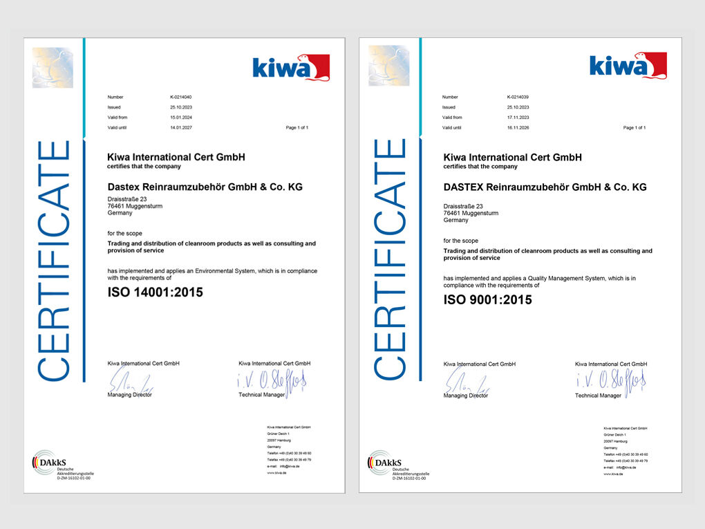 Les 16 et 17 octobre 2023, Dastex a été audité et certifié à nouveau selon les normes DIN EN ISO 9001 et DIN EN ISO 14001.