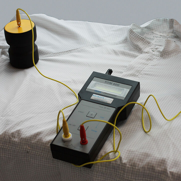 - Appareil de mesure pour déterminer la propension à s'électriser et la vitesse de décharge (pour tester la conductivité des tissus textiles mais aussi de vêtements entiers, ainsi que leurs propriétés DES/ESD).