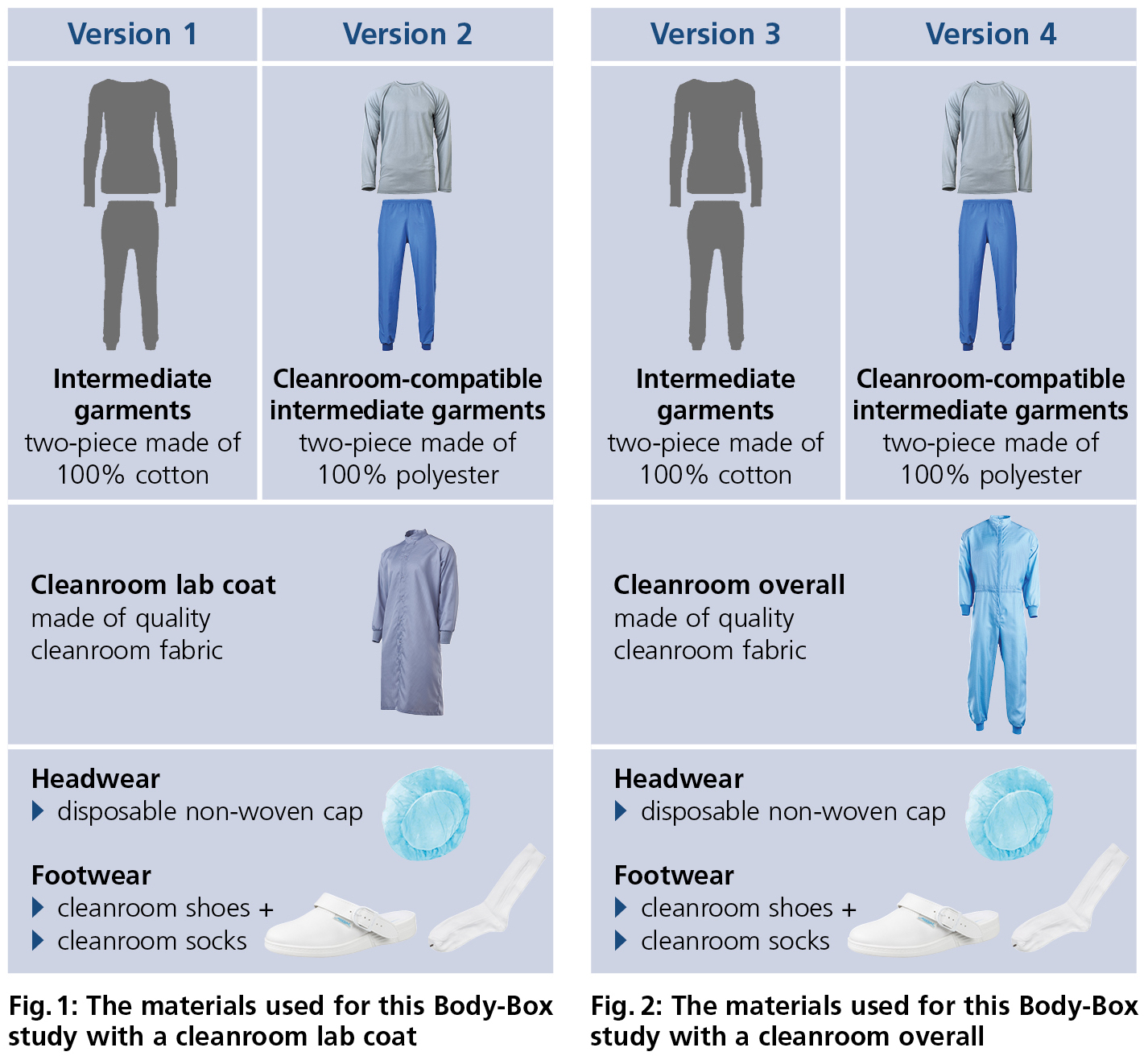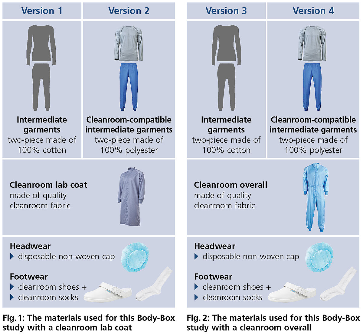Uit het onderzoek is ook gebleken dat het niet alleen voor hogere cleanroomklassen (ISO 5 en beter of GMP-gebieden A en B), maar ook voor lagere cleanroomklassen (ISO 6 tot ISO 8 of GMP-gebieden C en D) aan te bevelen is gedefinieerde, voor cleanrooms geschikte onderkleding te gebruiken. Vooral in de gebieden waar een cleanroomstofjas wordt gedragen, laat voor de cleanroom geschikte onderkleding (gemaakt van synthetische vezels) uitstekende resultaten zien, in directe vergelijking met een onderkleding van katoen, dat gewoonlijk wordt gebruikt voor privé-straatkleding.
