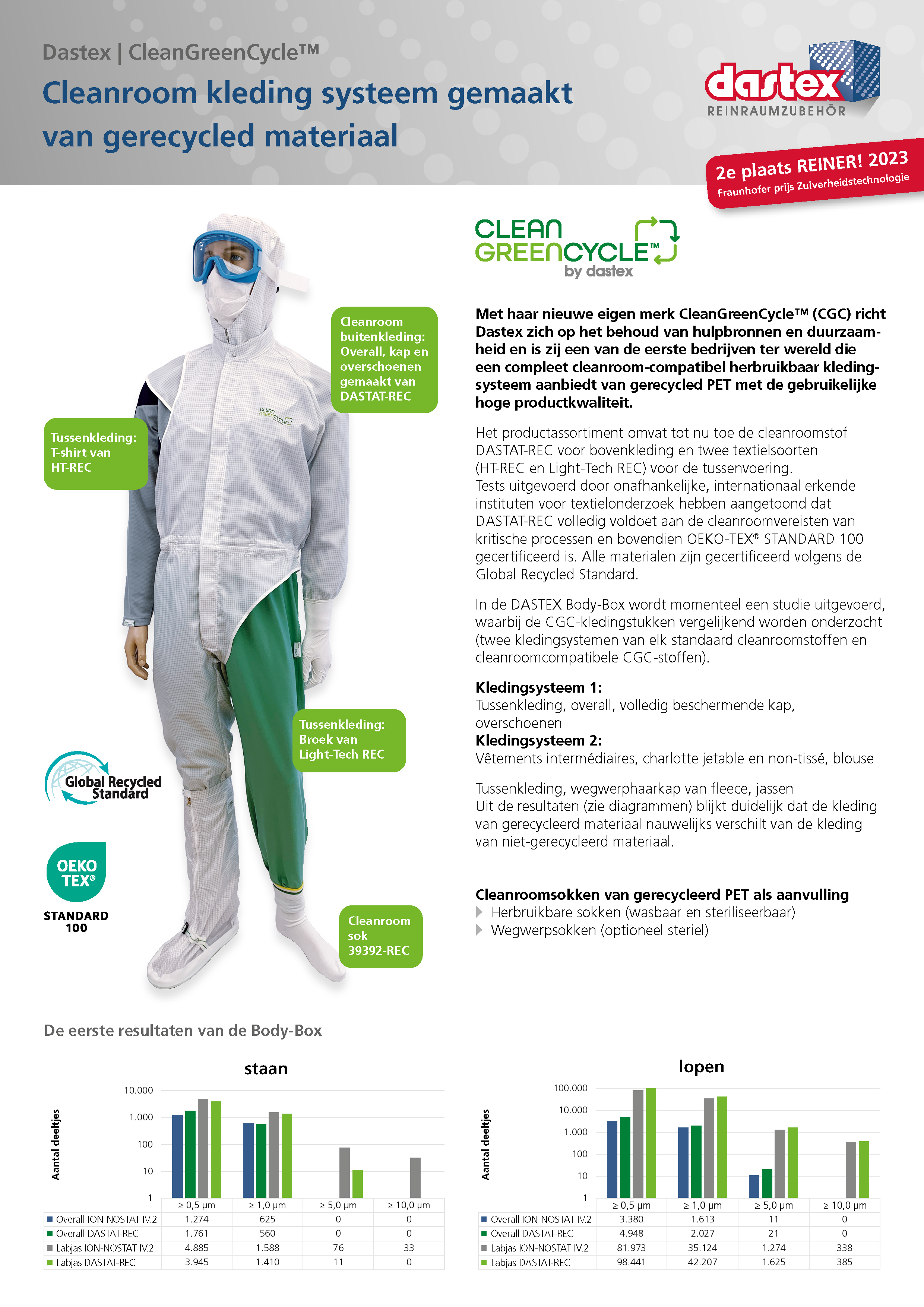 Op de LOUNGES 2023 in Karlsruhe ontving Dastex de Fraunhofer Cleanliness Technology Award voor de bijdrage „Dastex CleanGreenCycle™ – een cleanroom kleding systeem gemaakt van gerecycled materiaal”.