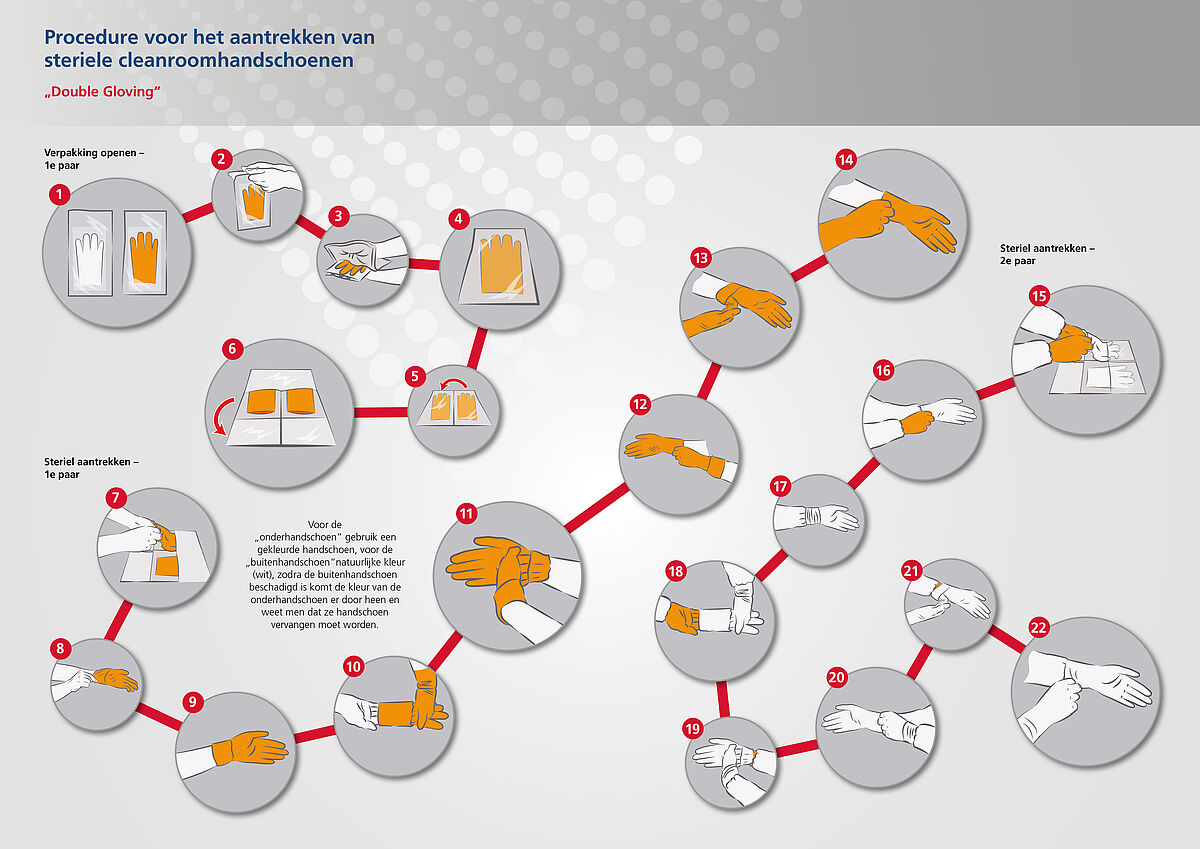 Double gloving – procedure voor het aantrekken van dubbele steriele cleanroomhandschoenen