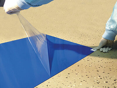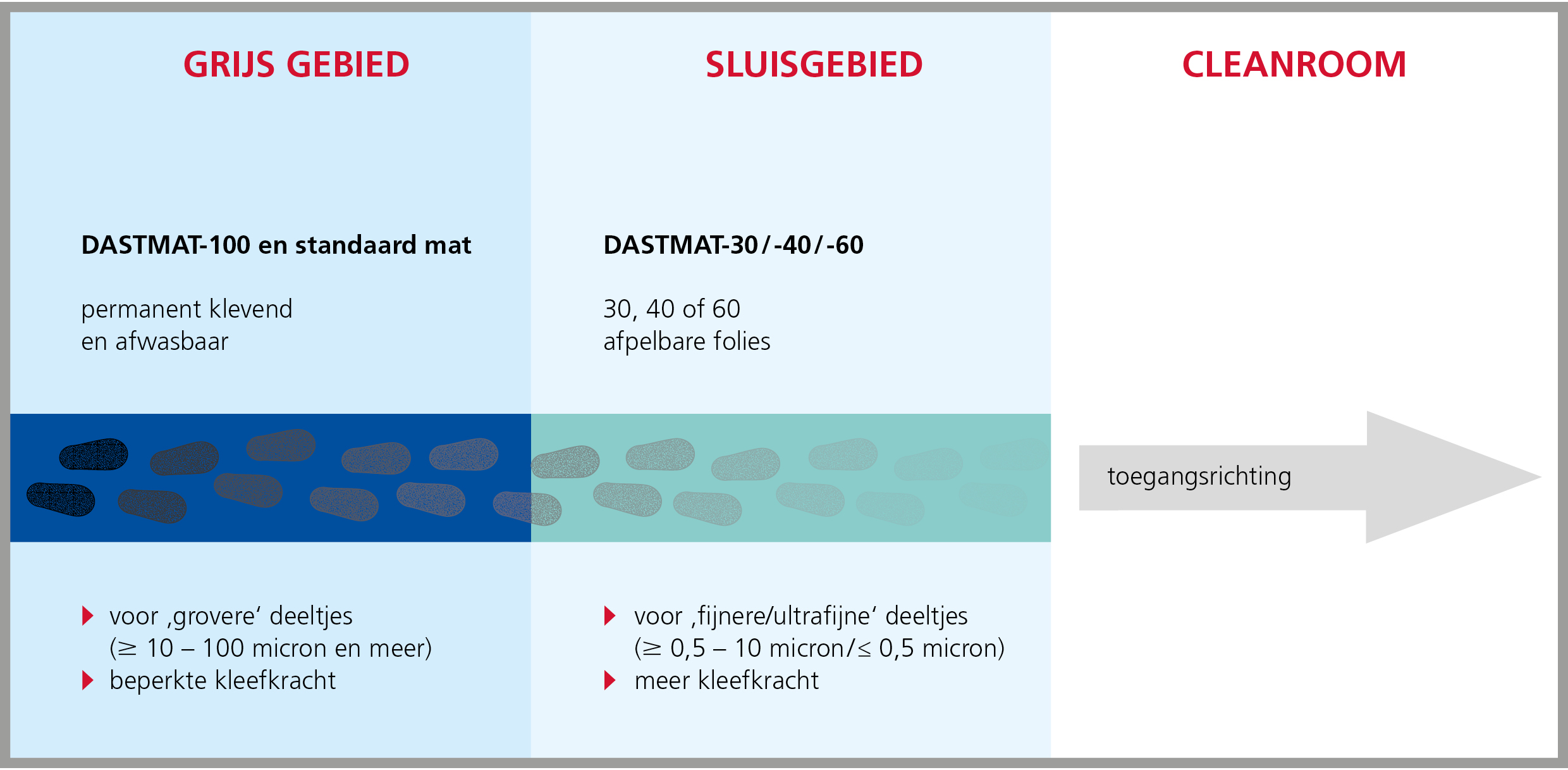 Door de sterk klevende werking en robuuste uitvoering worden deze matten bij voorkeur gebruikt voor het reinigen van schoenzolen e.d., direct in de luchtsluisruimte.