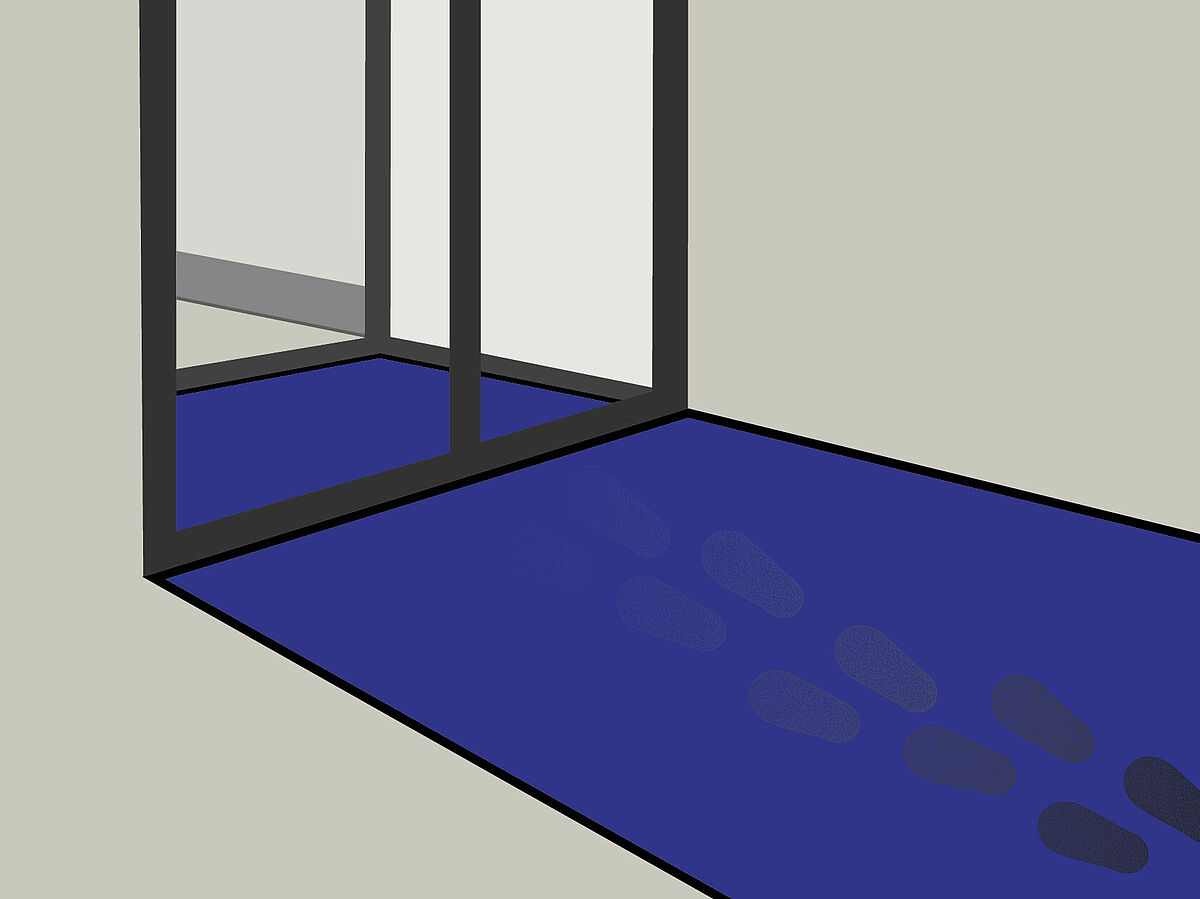 - het eigen gewicht van de mat maakt slipvaste plaatsing mogelijk op een vlakke, vooraf gereinigde (en droge) vloer