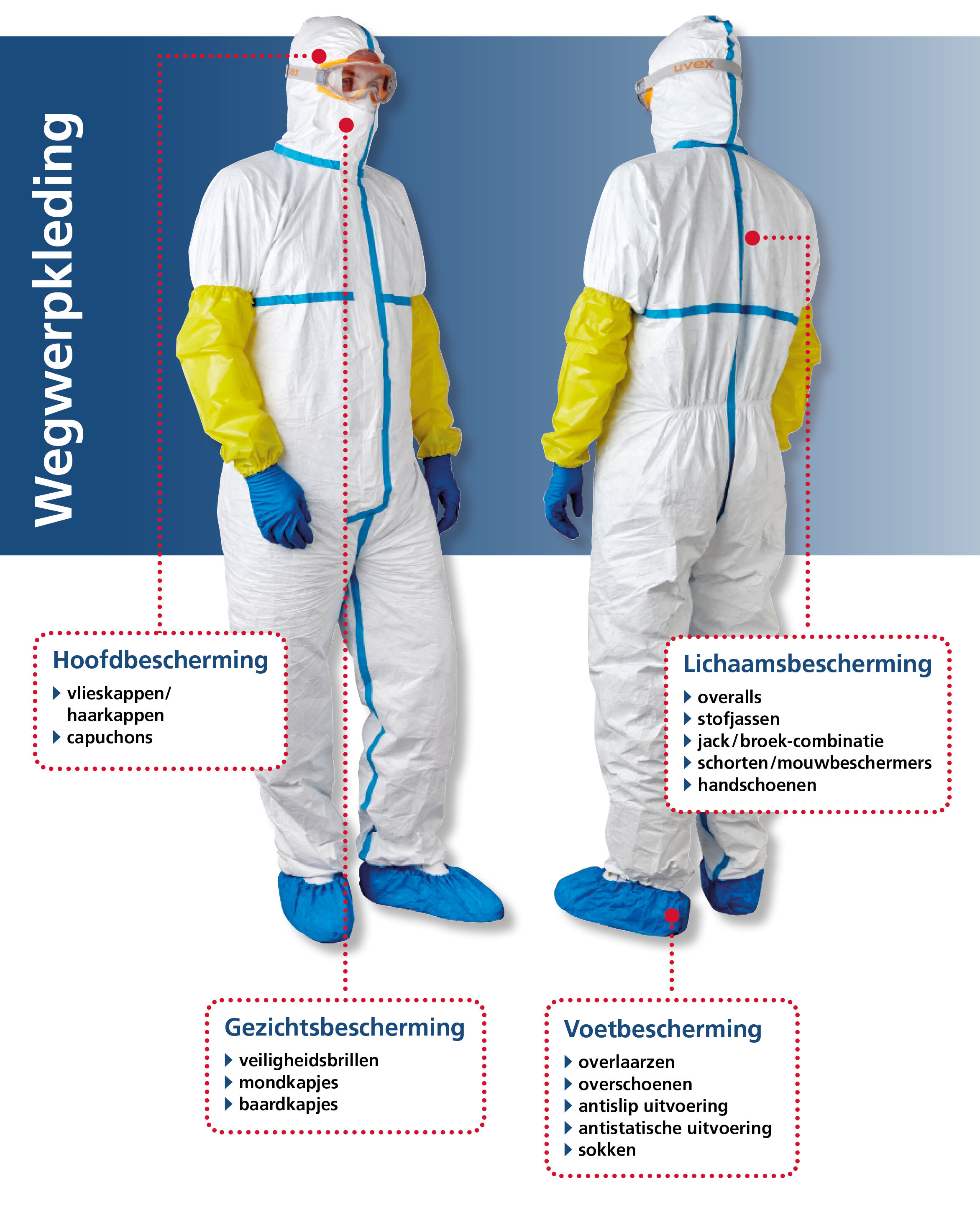 Hierbij moet worden voorkomen dat wegwerpkleding een extra verspreidingsbron van deeltjes wordt. Door hier op een passende manier gebruik van te maken, bijvoorbeeld in combinatie met herbruikbare kleding, kan de verontreiniging worden teruggebracht.