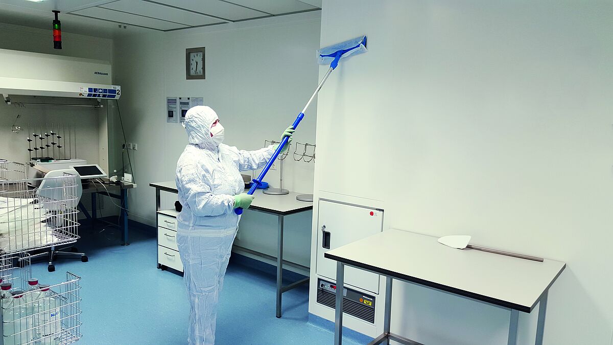Bei Bioziden handelt es sich um Einzelwirkstoffe oder Gemische, die dazu bestimmt sind, Schadorganismen (Bakterien, Viren, Sporen, Pilze oder Hefen) unschädlich zu machen oder abzutöten. Biozide sollten verschiedene verbindliche Standards erfüllen, um im Reinraum eingesetzt werden zu können (Wirksamkeit, Zulassung).