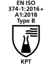 - Schutzhandschuh gegen gefährliche Chemikalien (Schutztyp B) für drei verschiedene Stoffklassen wie anorganische Basen, Peroxide, Aldehyde: K Natriumhydroxid 40 %; P Wasserstoffperoxid 30 %; T Formaldehyd 37 %