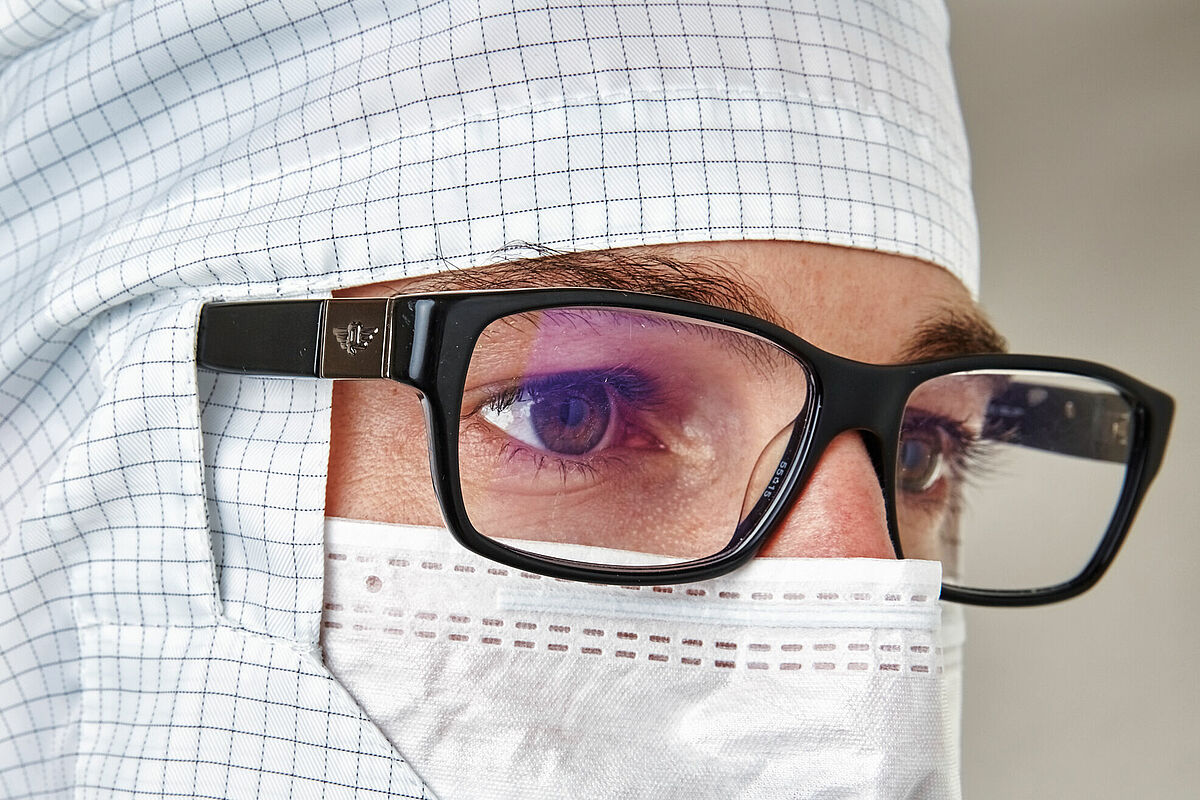 Reinraumhauben sind etwas sehr Sensibles, da sie perfekt sitzen sollten, um den kritischen Bereich, das Gesichtsfeld, entsprechend abzudecken, ohne den Mitarbeiter bei der Arbeit zu beeinträchtigen.