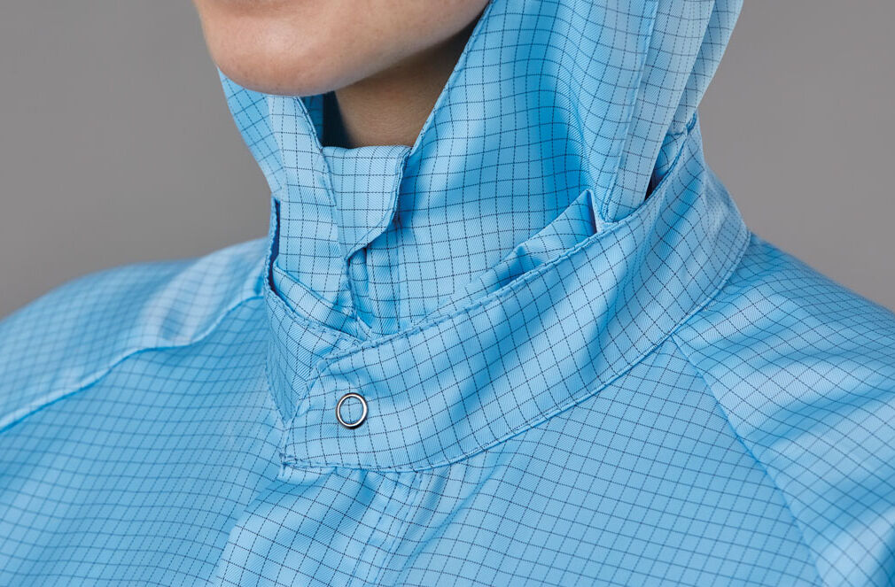 Zur LagerwareReinraumhauben sind etwas sehr Sensibles, da sie perfekt sitzen sollten, um den kritischen Bereich, das Gesichtsfeld, entsprechend abzudecken, ohne den Mitarbeiter bei der Arbeit zu beeinträchtigen. Bei der Vollschutzhaube sind Augen, Nase, Mund und Kinn nicht abgedeckt. Hier ist es wichtig, dass der Mundschutz entsprechend angepasst ist.