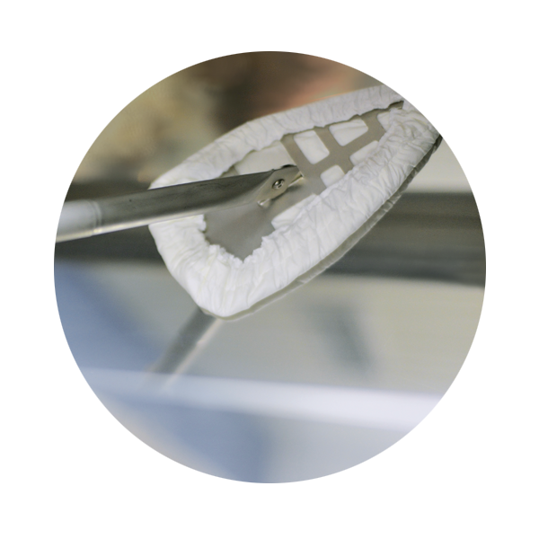 Durch die spezielle Form dieser Tools sind problemlos Ecken und Winkel von Isolatoren und Werkbänken erreichbar. Passende auswechselbare Überzüge/Bezüge oder Pads für die Aufsätze sind idealerweise aus abriebfestem Polyester. Alternativ können auch welche aus Polyester-Zellulose-Gemisch verwendet werden.