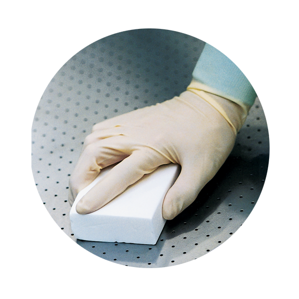 antistatisch, autoklavierbar, geringe Partikelemission, für glatte, wasserbeständige Oberflächen