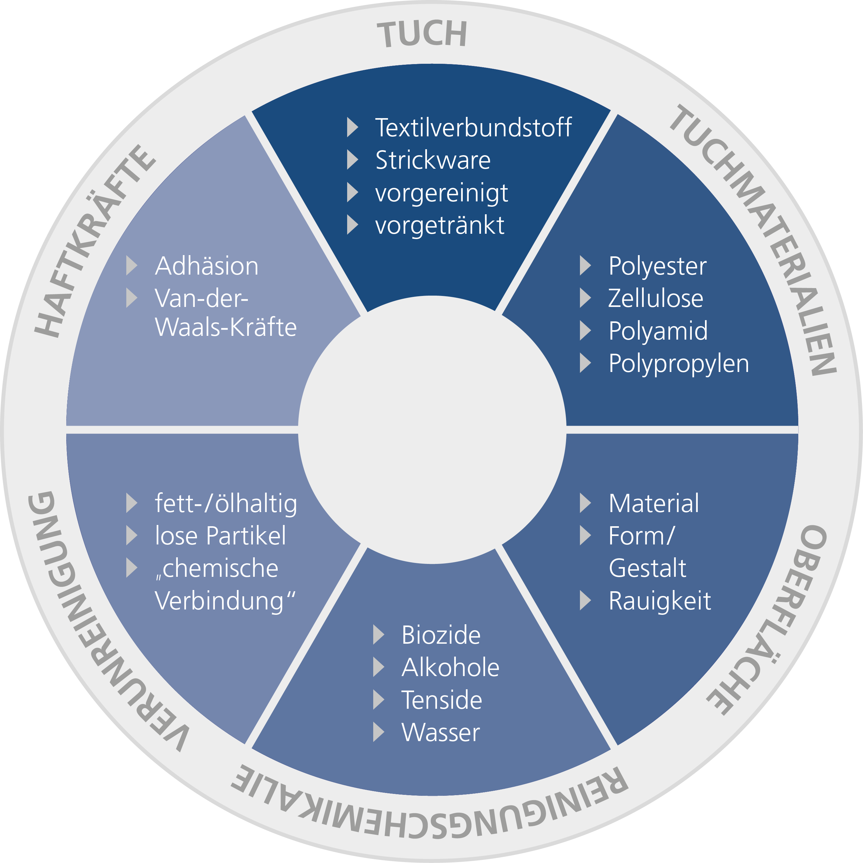 Oftmals ist es erst durch ein wischendes Reinigen möglich, die aufgrund der erhöhten Haftkräfte (Stichwort „van-derWaals-Kräfte“) fest an Oberflächen anlagernden Verunreinigungen größtenteils zu entfernen.