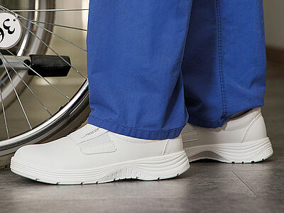 Grundanforderung: Rutschhemmung SB, aufgeteilt nach 3 Klassen (SRA, SRB oder SRC). Die Energieaufnahme der Zehenkappe liegt bei 200 Joule.