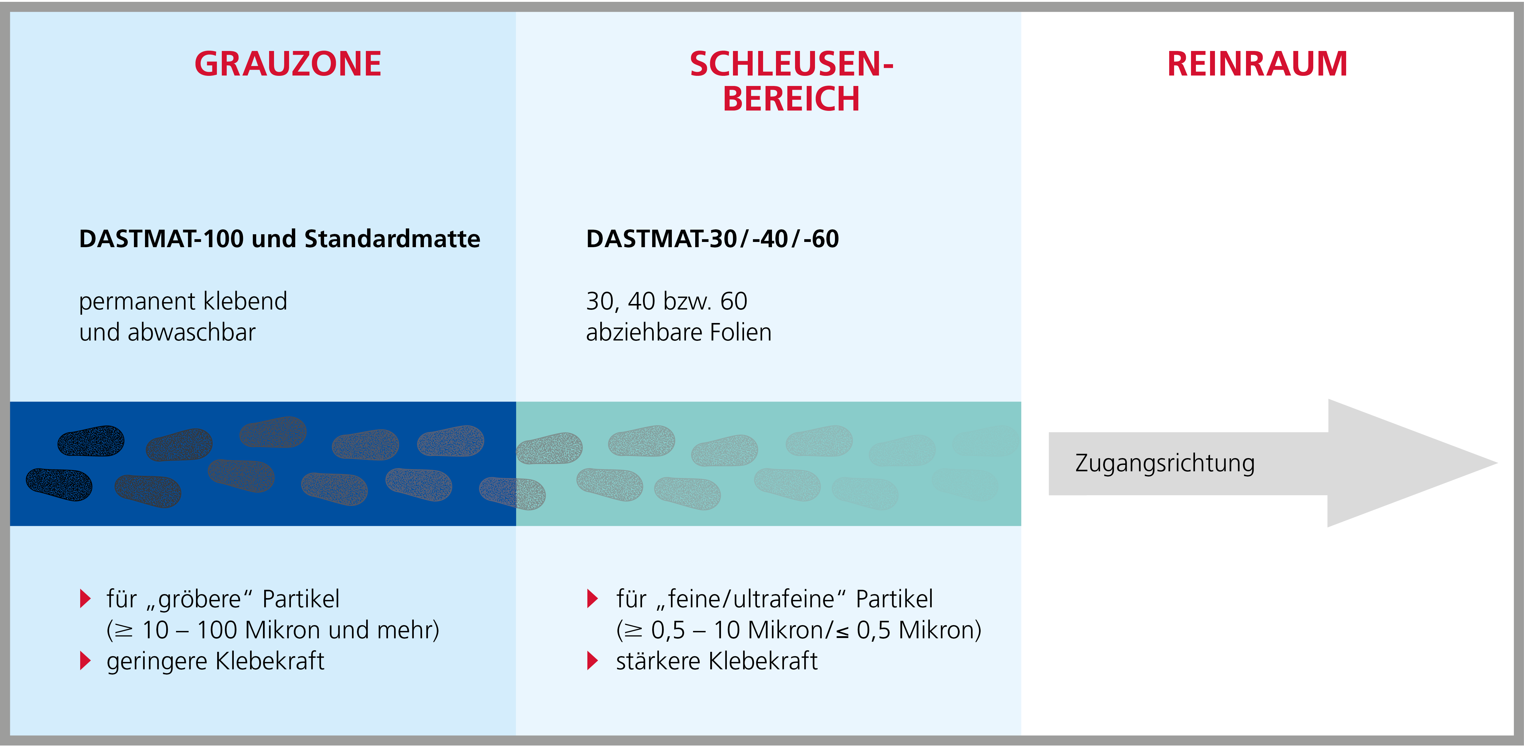 Diese Matte dient hauptsächlich der intensiven Vorreinigung der Lauffläche von Schuhsohlen. Meist wird sie als erste Reinigungsstufe vor dem Betreten des Reinraumes verwendet.