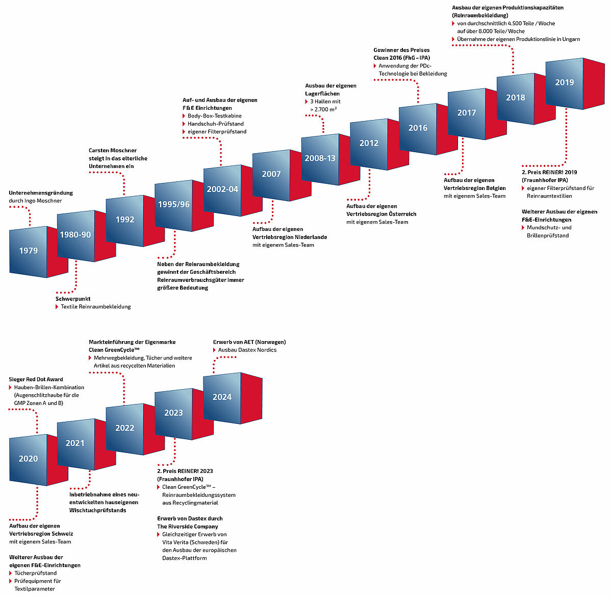 Im Laufe der Zeit hat sich Dastex international ausgerichtet und zählt heute zu den führenden Systemlieferanten in Europa für Reinraumbekleidung und Reinraumverbrauchsgüter.